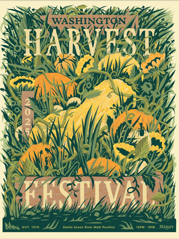 Each year, the Washington Business Association (WBA) commissions a local artist to create a collectible, limited-edition poster celebrating the bounty of Washington's Annual Harvest Festival. This year poster, designed by artist Zeb Mayer, measures 16" x 20" and is now available for purchase.